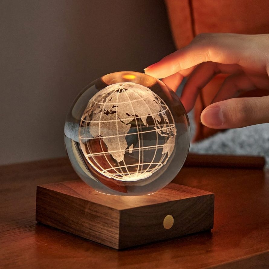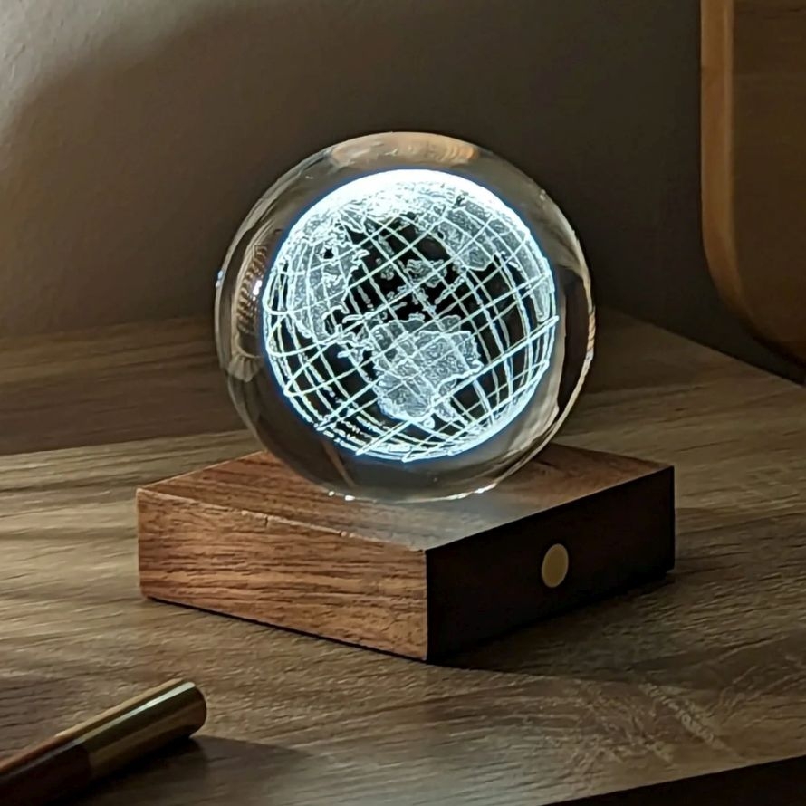 Φωτιστικό Amber Crystal Light 3D laser - World Globe - Gingko