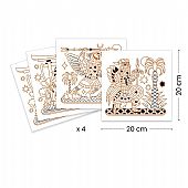 Περιλαμβάνει: 4 εικόνες (20 x 20 εκ.) με διαφορετικά σχέδια και 4 εικόνες έτοιμες για οδηγό στους μικρούς καλλιτέχνες.