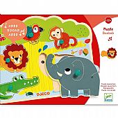 Τα ζωάκια ζούγκλας κάνουν παρέα όλα μαζί σε ένα παζλ 5 σφηνωμάτων της εταιρίας Djeco. Φωλιάστε στην κατάλληλη εγκοπή του ταμπλό το αντίστοιχο ζωάκι και το παζλ της ζούγκλας θα ολοκληρωθεί