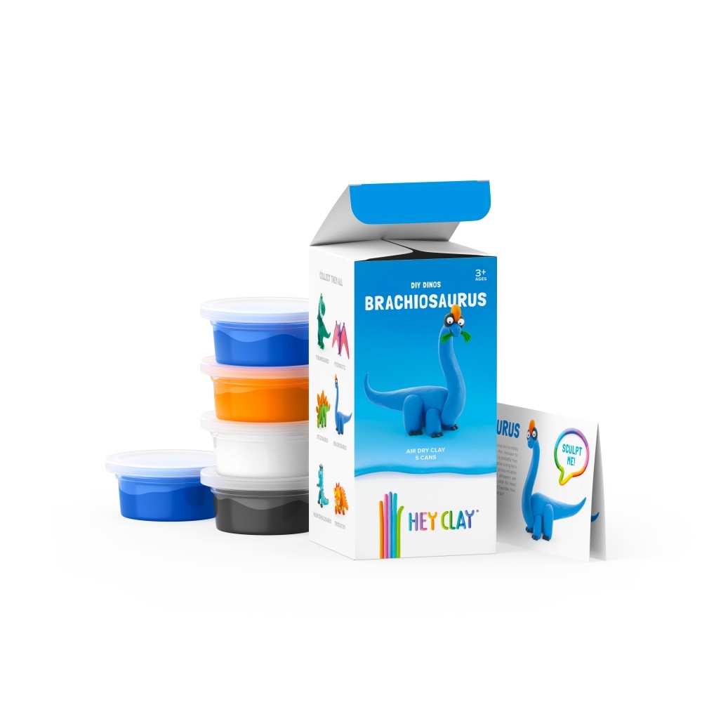 Κατασκευάστε το βραχιόσαυρο, αφήστε 20 λεπτά το πηλό να σταθεροποιηθεί και μετά από 24 ώρες θα έχει μετατραπεί σε ένα καινούργιο παιχνίδι. Κατεβάστε την εφαρμογή για κινητά και έξυπνες συσκευές για να βρείτε οδηγούς δημιουργίας και διάφορα υπέροχα κινούμενα σχέδια τα οποία θα καθοδηγούν τα παιδιά στο να δημιουργούν ευφάνταστους και πρωτότυπους χαρακτήρες. Η σειρά προϊόντων Hey Clay δημιουργήθηκε για να αναπτύξει τις δεξιότητες των παιδιών και να τα βοηθήσει να να καλλιεργήσουν την δημιουργική τους σκέψη.