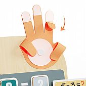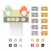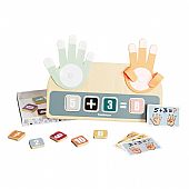 Εξοπλισμένο με κάρτες εργασιών και ξύλινα πλακίδια αριθμών, το Finger Math ενθαρρύνει τα παιδιά να αντιμετωπίσουν τα πρώτα τους αριθμητικά προβλήματα με ευκολία. Είτε πρόκειται για απλές προσθέσεις είτε για αφαιρέσεις, τα παιδιά εξασκούν παιχνιδιάρικα τις μαθηματικές τους δεξιότητες ενώ κινούν τα δάχτυλά για να υπολογίσουν τα σωστά αποτελέσματα.
