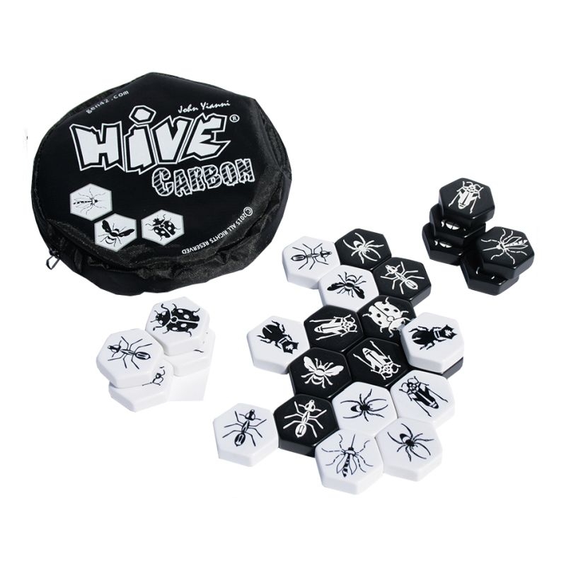 Το Hive Carbon είναι η κλασσική ασπρόμαυρη έκδοση του Hive. Το Hive είναι ένα εκπληκτικό και πολυβραβευμένο παιχνίδι στρατηγικής για δυο άτομα. Ενώ έχει απλούς κανόνες και ξεκινάς εύκολα να παίζεις, κρύβει απρόσμενο βάθος τεχνικών και στρατηγικών. Το HIVE πρωτοπαρουσιάστηκε στην μεγαλύτερη έκθεση επιτραπέζιων παιχνιδιών για το κοινό «Spiel Essen» όπου ψηφίστηκε ως «Best in Show». Από τότε έχει κερδίσει παγκοσμίως πολλά σημαντικά βραβεία με αποκορύφωμα το πολυπόθητο βραβείο της MENSA, The IQ Society: «Mensa Select Winner». Έχει γίνει σημείο αναφοράς της κατηγορίας που ανήκει και παίζεται στις περισσότερες χώρες του κόσμου. Εφευρέτης του παιχνιδιού είναι ο βρετανός ελληνικής καταγωγής John Yianni.