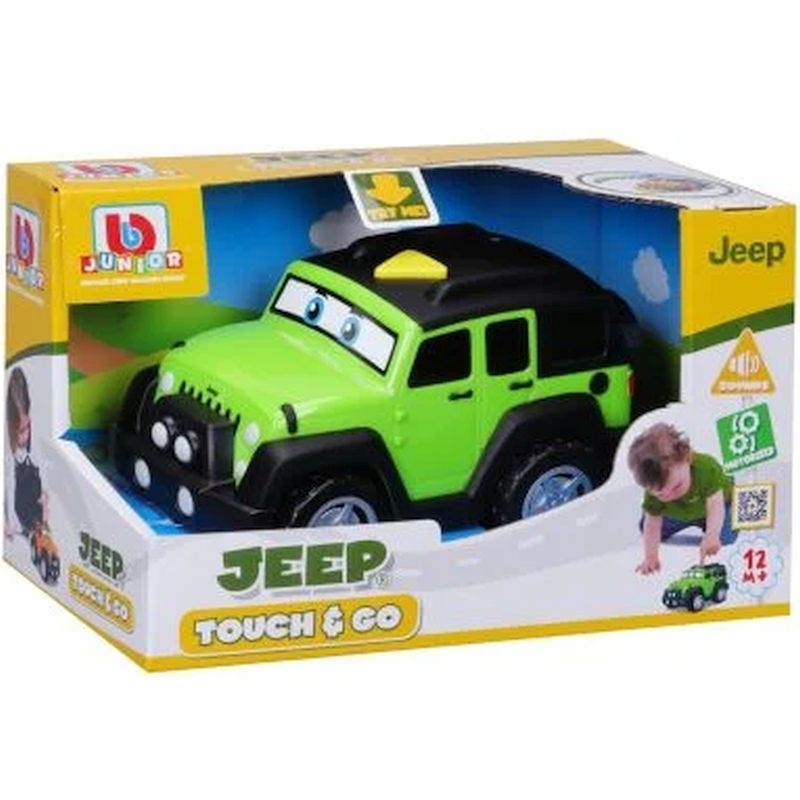 Βρεφικό όχημα Jeep Wrangler Touch & Go με ηχητικές και φωτεινές λειτουργίες με το πάτημα ενός κουμπιού. Πατήστε το κουμπί για να ακούσετε τον ήχο του κινητήρα ενός Jeep. Η κατηγορία βρεφικών οχημάτων της Bburago Junior αναπτύσσει τις λεπτές κινητικές δεξιότητες, τη δημιουργικότητα και τη φαντασία των μικρών παιδιών.