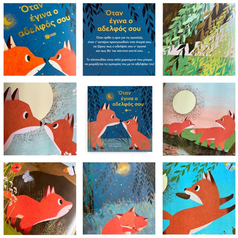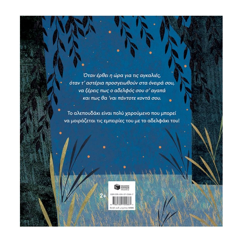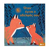Όταν έρθει η ώρα για τις αγκαλιές, όταν τ’ αστέρια προσγειωθούν στα όνειρά σου, να ξέρεις πως ο αδελφός σου σ’ αγαπά και πως θα ’ναι πάντοτε κοντά σου. Το αλεπουδάκι είναι πολύ χαρούμενο που μπορεί να μοιράζεται τις εμπειρίες του με το αδελφάκι του! Ένα όμορφο, συγκινητικό εικονογραφημένο βιβλίο, mε ένα λυρικό κείμενο με ομοιοκαταληξία, που εξυμνεί τον δεσμό και την αγάπη ανάμεσα σε δύο αδέλφια. Είτε κυνηγάει πεταλούδες είτε μοιράζεται κουκουνάρια είτε χαζεύει την ώρα του ύπνου, δεν υπάρχει τίποτα που να αγαπά περισσότερο αυτό το μικρό αλεπουδάκι από το να περνά χρόνο με τον μεγάλο του αδερφό.