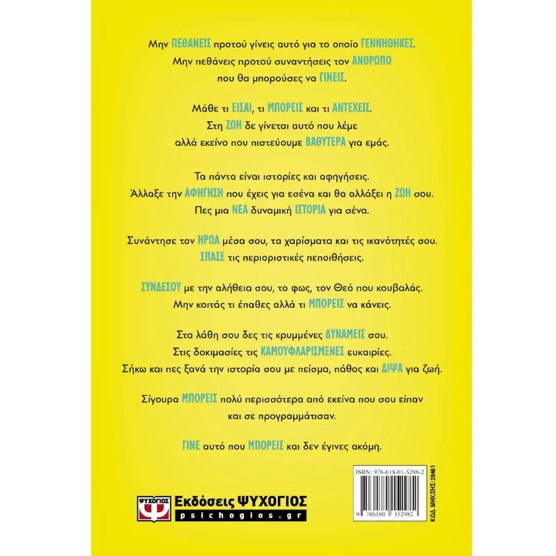 Μην ΠΕΘΑΝΕΙΣ προτού γίνεις αυτό για το οποίο ΓΕΝΝΗΘΗΚΕΣ. Μην πεθάνεις προτού συναντήσεις τον ΑΝΘΡΩΠΟ που θα μπορούσες να ΓΙΝΕΙΣ.