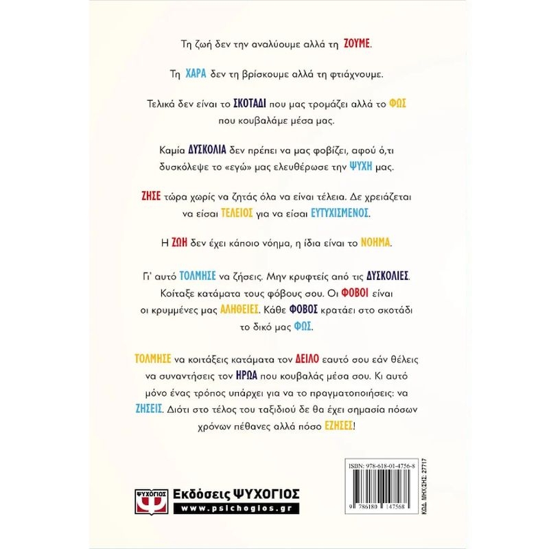ΤΟΛΜΗΣΕ να κοιτάξεις κατάματα τον ΔΕΙΛΟ εαυτό σου εάν θέλεις να συναντήσεις τον ΗΡΩΑ που κουβαλάς μέσα σου. Κι αυτό μόνο ένας τρόπος υπάρχει για να το πραγματοποιήσεις: να ΖΗΣΕΙΣ. Διότι στο τέλος του ταξιδιού δε θα έχει σημασία πόσων χρόνων πέθανες αλλά πόσο ΕΖΗΣΕΣ!