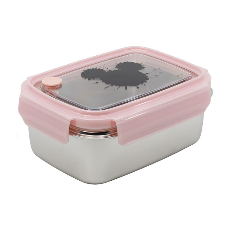 Το δοχείο φαγητού Mickey της εταιρείας Stor είναι κατασκευασμένο από inox, ένα υλικό που το κάνει ελαφρύ, εύκολο στη μεταφορά και ανθεκτικό, δεν είναι όμως κατάλληλο για φούρνο μικροκυμάτων αλλά είναι κατάλληλο για ζέσταμα του φαγητού σε συμβατικό φούρνο αφού αφαιρεθεί το καπάκι. Διαθέτει κλιπς κλεισίματος για μεγαλύτερη στεγανότητα. Είναι εύκολο στο καθάρισμα και έχει βαλβίδα για τον εξαερισμό.