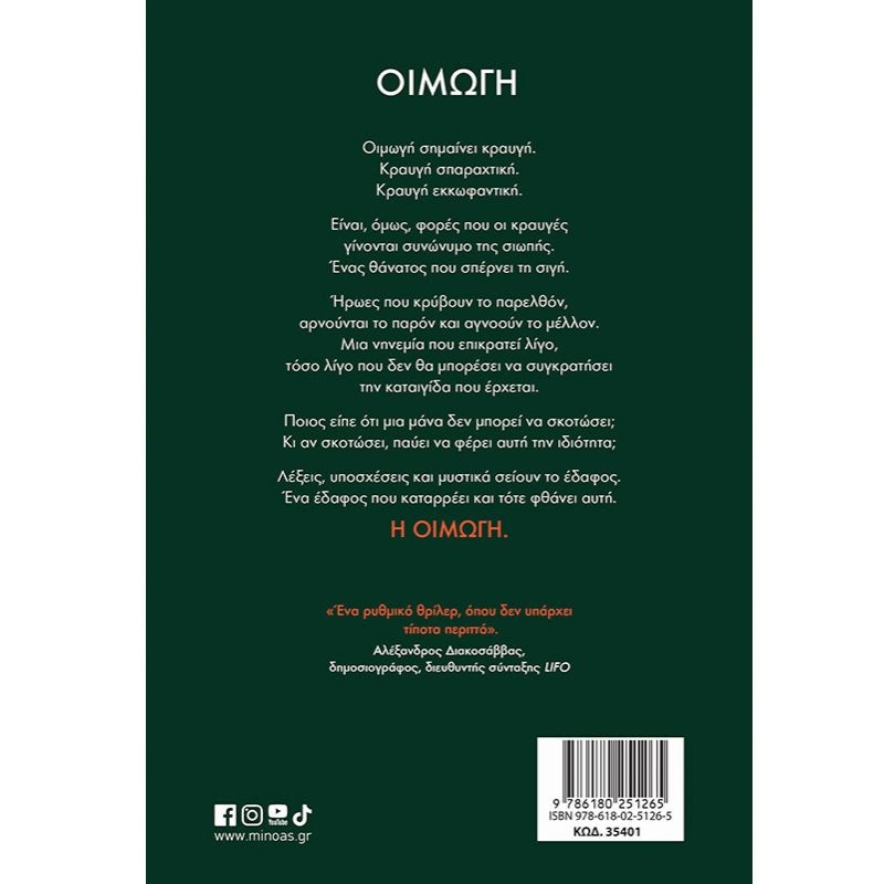 Οιμωγή σημαίνει κραυγή. Κραυγή σπαραχτική. Κραυγή εκκωφαντική. Είναι, όμως, φορές που οι κραυγές γίνονται συνώνυμο της σιωπής. Ένας θάνατος που σπέρνει τη σιγή. Ήρωες που κρύβουν το παρελθόν, αρνούνται το παρόν και αγνοούν το μέλλον. Μια νηνεμία που επικρατεί λίγο, τόσο λίγο που δεν θα μπορέσει να συγκρατήσει την καταιγίδα που έρχεται. Ποιος είπε ότι μια μάνα δεν μπορεί να σκοτώσει; Κι αν σκοτώσει, παύει να φέρει αυτή την ιδιότητα; Λέξεις, υποσχέσεις και μυστικά σείουν το έδαφος. Ένα έδαφος που καταρρέει και τότε φθάνει αυτή. Η ΟΙΜΩΓΗ.