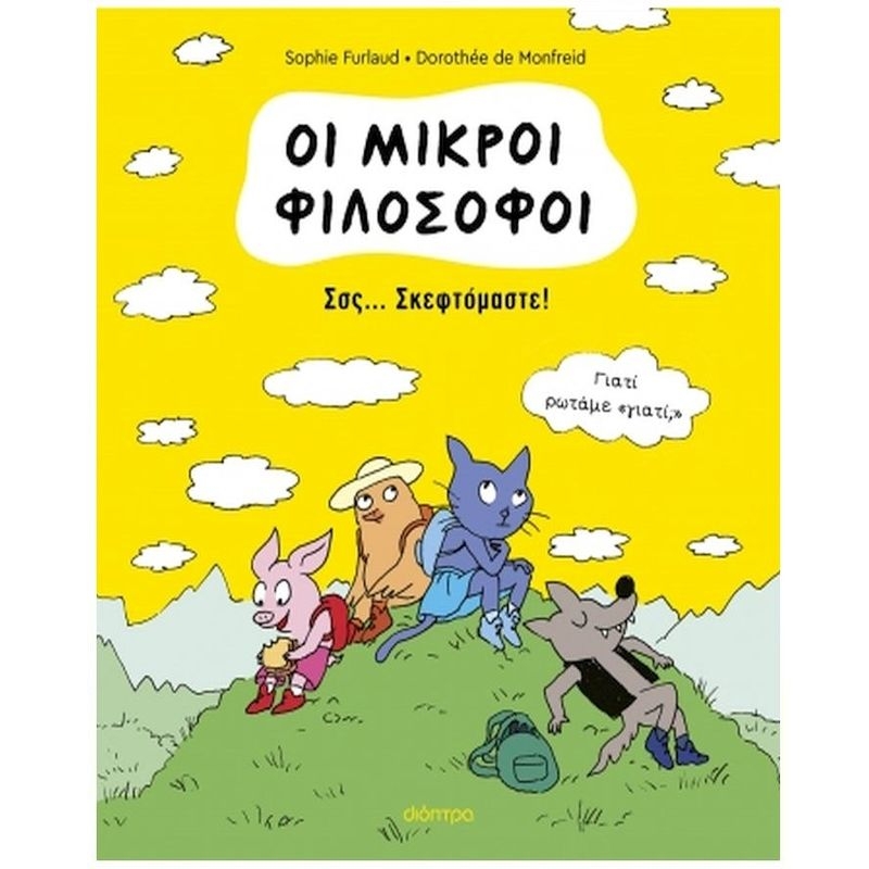 Πού ήμουν πριν γεννηθώ... Περίμενα κάπου; Ποιος αποφασίζει τι απαγορεύεται; Αφού μιλάμε διαφορετικές γλώσσες σκεφτόμαστε διαφορετικά; Έχουν κι άλλοι τον δικό μου εαυτό; Η Μίνα, ο Λουκ, ο Πόρκι και ο Σαΐτας είναι Οι Μικροί Φιλόσοφοι! Έχουν πολλές απορίες, αλλά και άποψη… Τους αρέσει να συζητούν, να μαλώνουν, να παίζουν, να φαντάζονται... και μέσα από τις αστείες περιπέτειές τους αμφισβητούν με εξυπνάδα και χιούμορ τα μικρά και μεγάλα μυστήρια της ζωής! Ένα πρωτότυπο κόμικ άλμπουμ με 15 μικρές ιστορίες που παρακινούν τα παιδιά να αναπτύξουν κοινωνικές δεξιότητες και κριτική σκέψη.