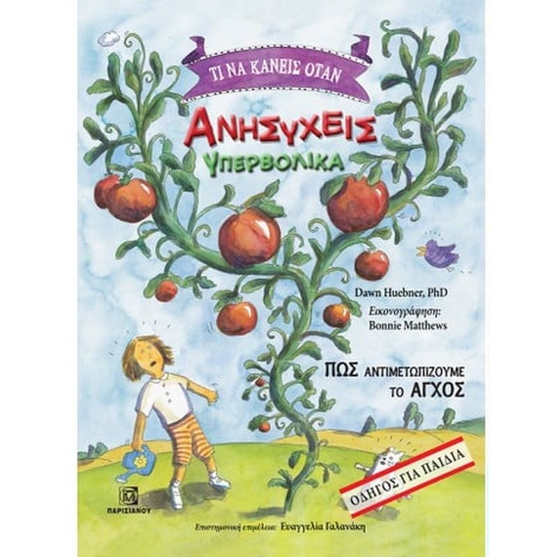 Ήξερες ότι οι ανησυχίες είναι σαν τις ντοματιές; Όχι, δεν μπορείς να τις φας όπως τις ντομάτες, αλλά μπορείς να τις κάνεις να μεγαλώσουν, απλώς δίνοντάς τους σημασία. Αν οι ανησυχίες σου έχουν μεγαλώσει σε βαθμό που σε ενοχλούν καθημερινά, αυτό το βιβλίο είναι για σένα. Το βιβλίο «Τι να κάνεις όταν ανησυχείς υπερβολικά» καθοδηγεί τα παιδιά και τους γονείς πάνω στις συνηθέστερα χρησιμοποιούμενες τεχνικές για την αντιμετώπιση του άγχους. Οι επιτυχείς αλληγορίες και η ζωηρή εικονογράφηση καθιστούν ευνόητες τις έννοιες και τις στρατηγικές, ενώ οι ξεκάθαρες βήμα προς βήμα οδηγίες και οι ασκήσεις ζωγραφικής βοηθούν τα παιδιά να κατακτήσουν καινούργιες δεξιότητες για την αντιμετώπιση του άγχους. Αυτό το διαδραστικό βιβλίο αυτοβοήθειας αποτελεί ένα εξαιρετικό ανάγνωσμα που θα βοηθήσει τα παιδιά να ξεπεράσουν τα άγχη τους.