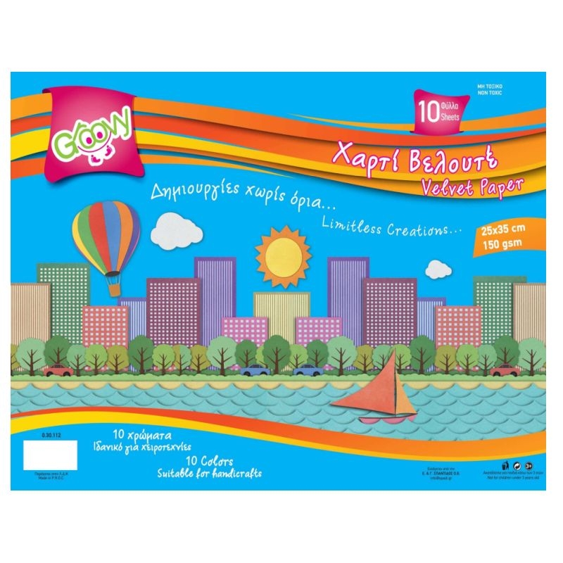 Μπλοκ από την Groovy βελουτέ κατάλληλα για σχολικές εργασίες, κολάζ και παιδικές χειροτεχνίες φύλλα 25x35 / 10 τεμαχίων.