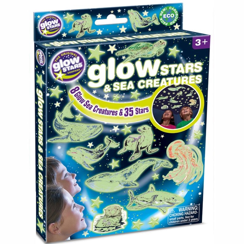 Αυτοκόλλητα φωσφορίζοντα θαλάσσια πλάσματα (ορατοί και στο φως της μέρας) και αστέρια που λάμπουν στο σκοτάδι. Φέρτε ένα φανταστικό περιβάλλον στο δωμάτιό σας! Δημιουργήστε σχέδια σε οροφές και τοίχους. Με αυτοκόλλητα για εύκολη τοποθέτηση στις περισσότερες επιφάνειες. Τα αυτοκόλλητα είναι ένα εξαιρετικό προϊόν από την Original Glowstars Company. Ιδανικά για να αποτελέσουν διακόσμηση στα παιδικά δωμάτια ή για να χρησιμοποιηθούν στις σχολικές τσάντες και τα βιβλία. Την ημέρα τα αυτοκόλλητα είναι φωτεινά, πολύχρωμα και διασκεδαστικά, αλλά στη νύχτα, όταν τα φώτα σβήνουν, παράγουν μια φανταστική λαμπερή εικόνα.