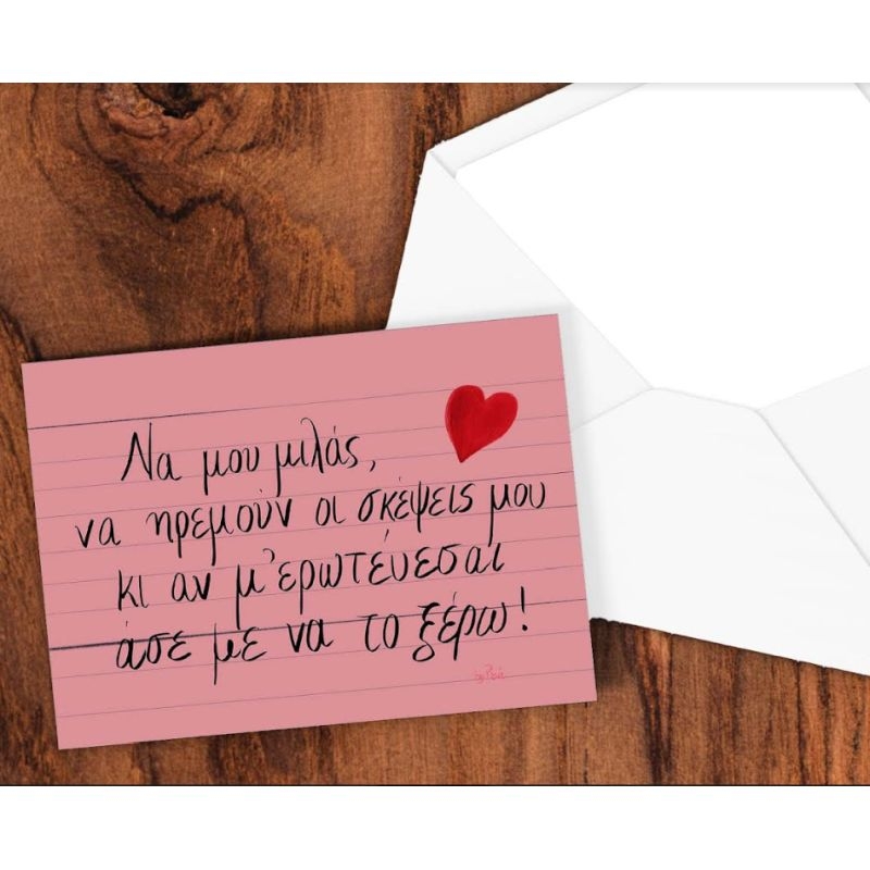 Χειροποίητη ευχετήρια κάρτα τυπωμένη σε χαρτί πολυτελείας ματ 300gr με λεκτικό "Να μου μιλάς". Ιδανική για τις ευχές επετείου, από την J.o. Creations.