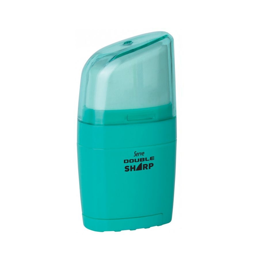 Η Serve double προσφέρει άλλο ένα πρωτοποριακό προϊόν! Σβήστρα και ξύστρα μαζί σε νέο σχεδιασμό. Περιλαμβάνει μια χρωματιστή ξύστρα, στο κάτω μέρος, που ανοίγει με καπάκι και κρατά στο δοχείο της τα ξύσματα και παράλληλα διαθέτει μια μαλακή συνθετική σβήστρα, στο πάνω μέρος, κατάλληλη για πλήθος μολυβιών γραφίτη.