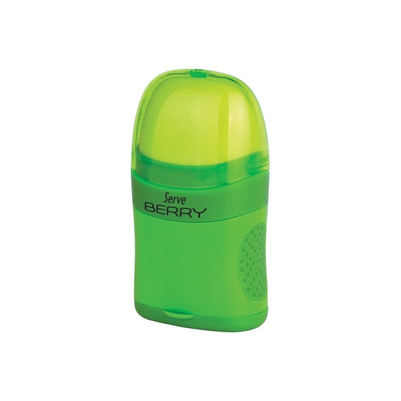 Η Serve προσφέρει άλλο ένα πρωτοποριακό προϊόν! Σβήστρα και ξύστρα μαζί σε νέο σχεδιασμό. Περιλαμβάνει μια διπλή χρωματιστή ξύστρα, στο κάτω μέρος, που ανοίγει με καπάκι και κρατά στο δοχείο της, τα ξύσματα και παράλληλα διαθέτει μια μαλακή συνθετική σβήστρα, στο πάνω μέρος, κατάλληλη για πλήθος μολυβιών γραφίτη.