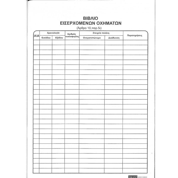 Βιβλίο εισερχομένων οχημάτων (21x29/50Φ.) - Logigraf