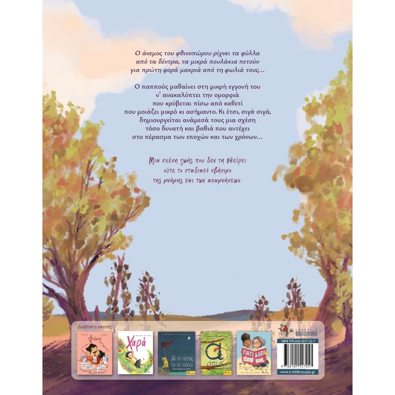 Ο άνεμος του φθινοπώρου ρίχνει τα φύλλα από τα δέντρα, τα μικρά πουλάκια πετούν για πρώτη φορά μακριά από τη φωλιά τους…Ο παππούς μαθαίνει στη μικρή εγγονή του ν’ ανακαλύπτει την ομορφιά που κρύβεται πίσω από καθετί που μοιάζει μικρό κι ασήμαντο. Κι έτσι, σιγά σιγά, δημιουργείται ανάμεσά τους μια σχέση τόσο δυνατή και βαθιά που αντέχει στο πέρασμα των εποχών και των χρόνων…