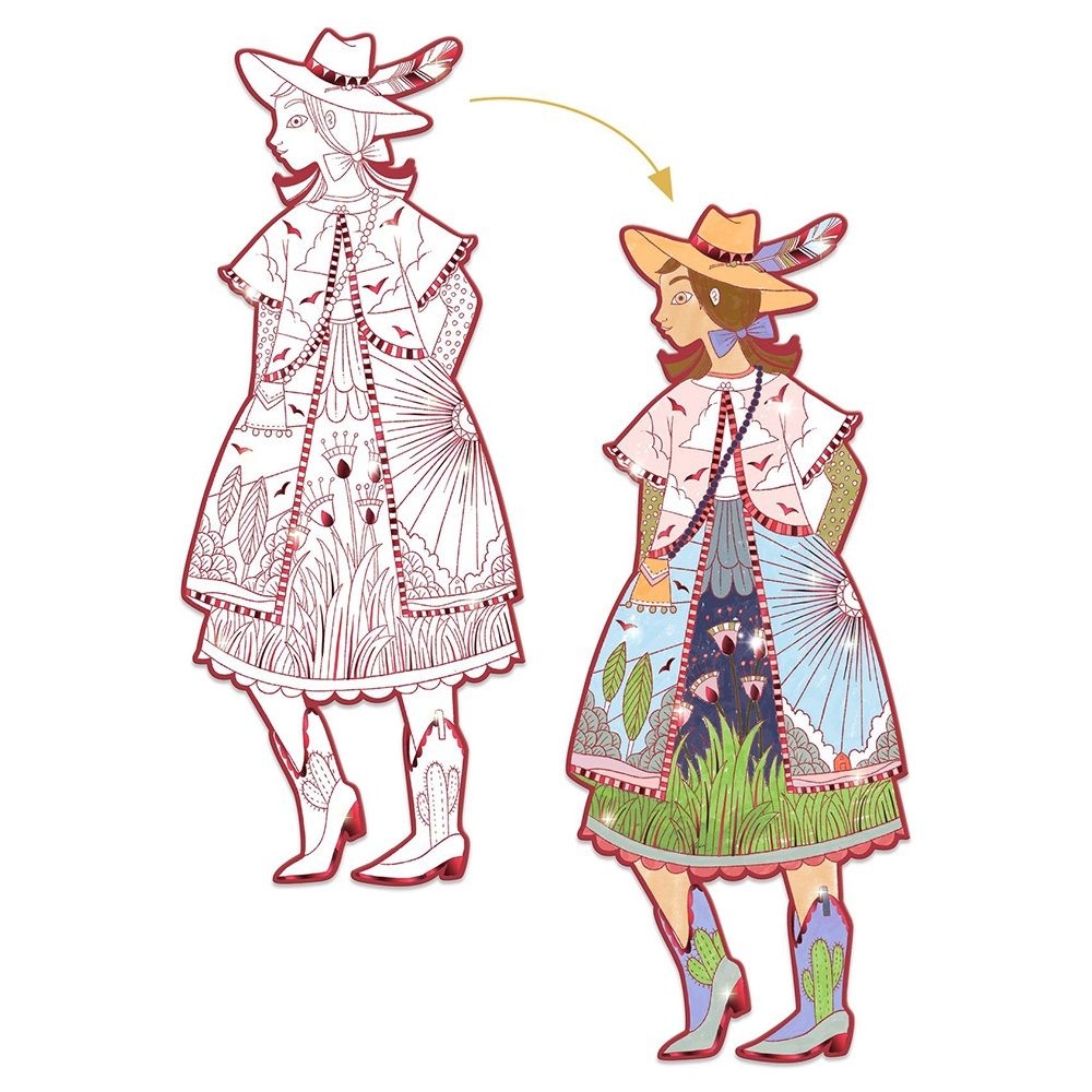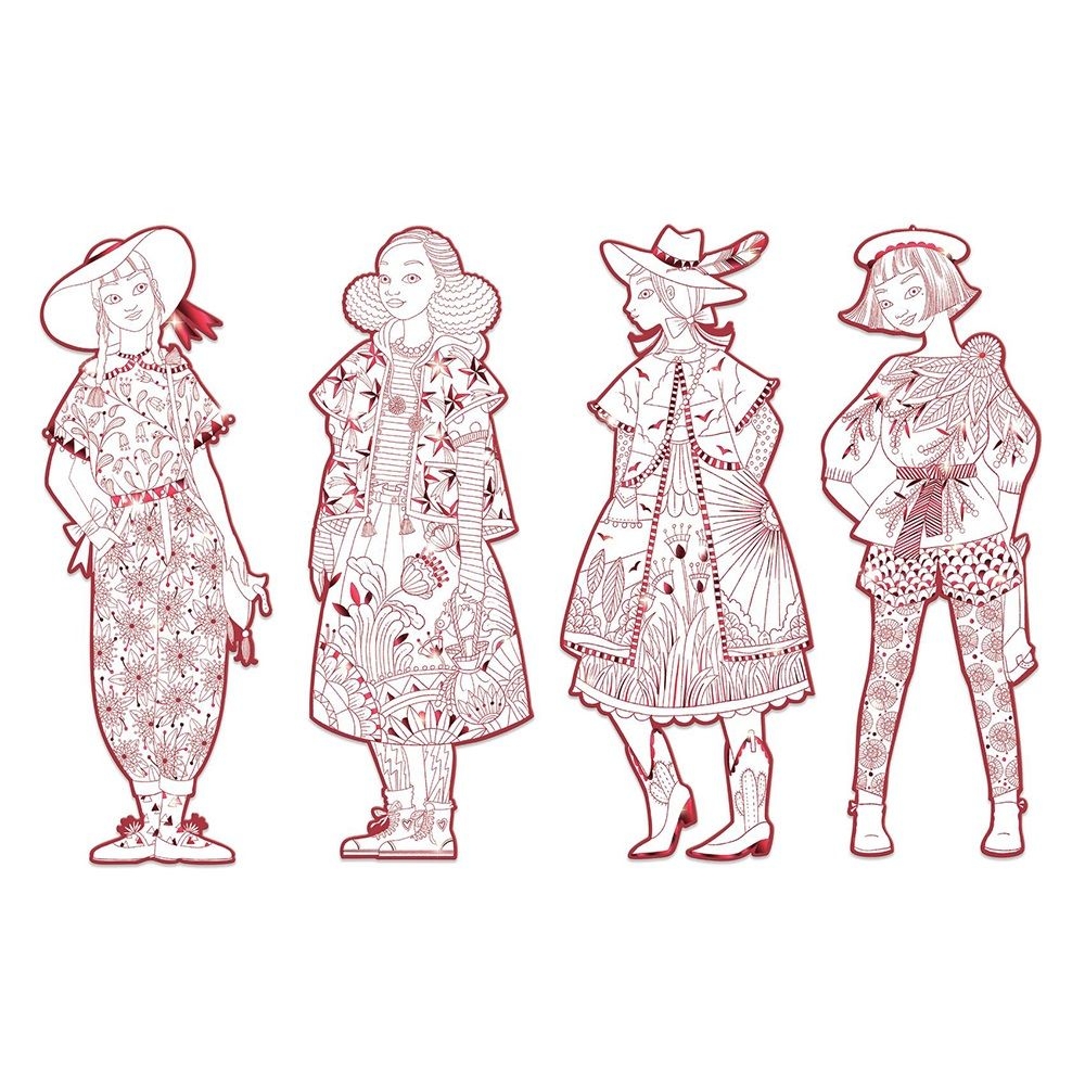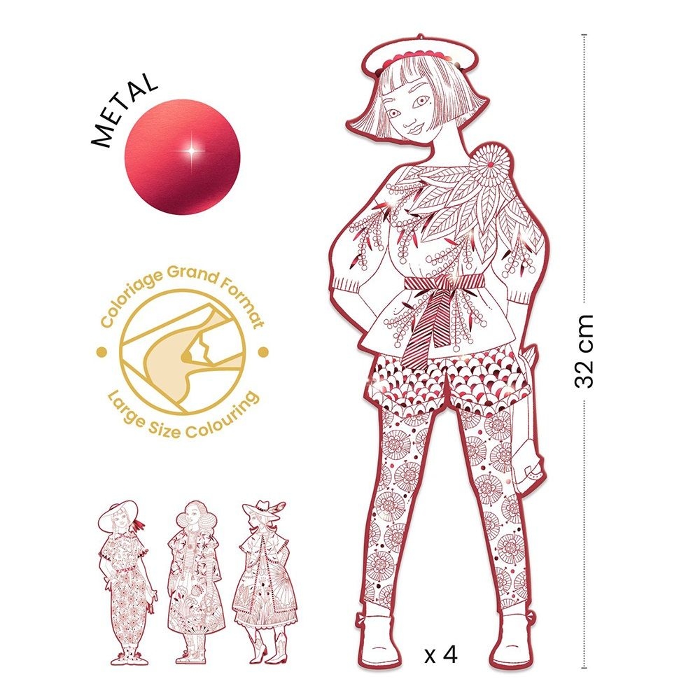 Πρωτότυπη χειροτεχνία της εταιρίας Djeco για όλους όσους αγαπούν τη μόδα! Το σετ περιλαμβάνει 4 κοπέλες με διαφορετικό στυλ ρούχων για να χρωματίσουν τα παιδιά είτε με ξυλομπογιές είτε με μαρκαδόρους με λεπτή μύτη. Κάθε φιγούρα είναι κατασκευασμένη από σκληρό πεπιεσμένο χαρτόνι για να είναι ανθεκτικές και να μπορούν να φυλαχθούν ή να στολιστούν στο παιδικό δωμάτιο για καιρό. Η κάθε μια έχει ύψος 32 εκατοστών, έτσι ώστε τα παιδιά να πειραματιστούν με τη ζωγραφική σε μεγαλύτερη κλίμακα και διαθέτει μεταλλικές λάμψεις που εγγυούνται ένα εντυπωσιακό αποτέλεσμα! Ένας διασκεδαστικός τρόπος να απολαύσουν τα παιδιά την τέχνη της ζωγραφικής, που καλλιεργεί την αισθητική νοημοσύνη τους και αναπτύσσει την συγκέντρωση και την λεπτή τους κίνηση.