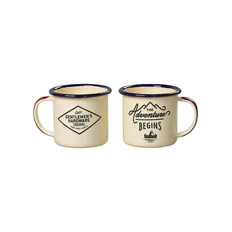 Το σετ κούπες της εταιρείας Gentlemen's Hardware, αποτελεί ένα απαραίτητο αξεσουάρ καθώς τη χρησιμοποιούμε, κατά κύριο λόγο για ζεστά ροφήματα όπως ο καφές, το τσάι ή η ζεστή σοκολάτα, αλλά φυσικά βρίσκει εφαρμογή και σε οποιοδήποτε άλλο τύπο ροφήματος. Έχει πιο ανεπίσημο χαρακτήρα, σε σχέση με ένα φλιτζάνι, και γι' αυτό τον λόγο είναι ιδανική για καθημερινή χρήση. Είναι εμαγιέ, δηλαδή το υλικό της προκύπτει από την εφαρμογή του σμάλτου (γυαλί) επάνω σε μέταλλο. Προσφέρει υψηλή ανθεκτικότητα και είναι κατάλληλη για κάθε είδος ροφήματος. Ο vintage σχεδιασμός το κάνει επίσης υπέροχο δώρο. Περιλαμβάνει γράμματα "The Adventure Begins" και το λογότυπο Gentlemen's Hardware σε κάθε κούπα.