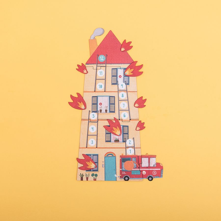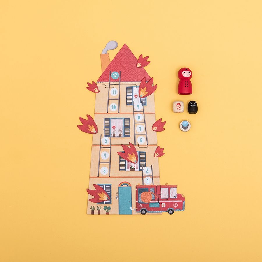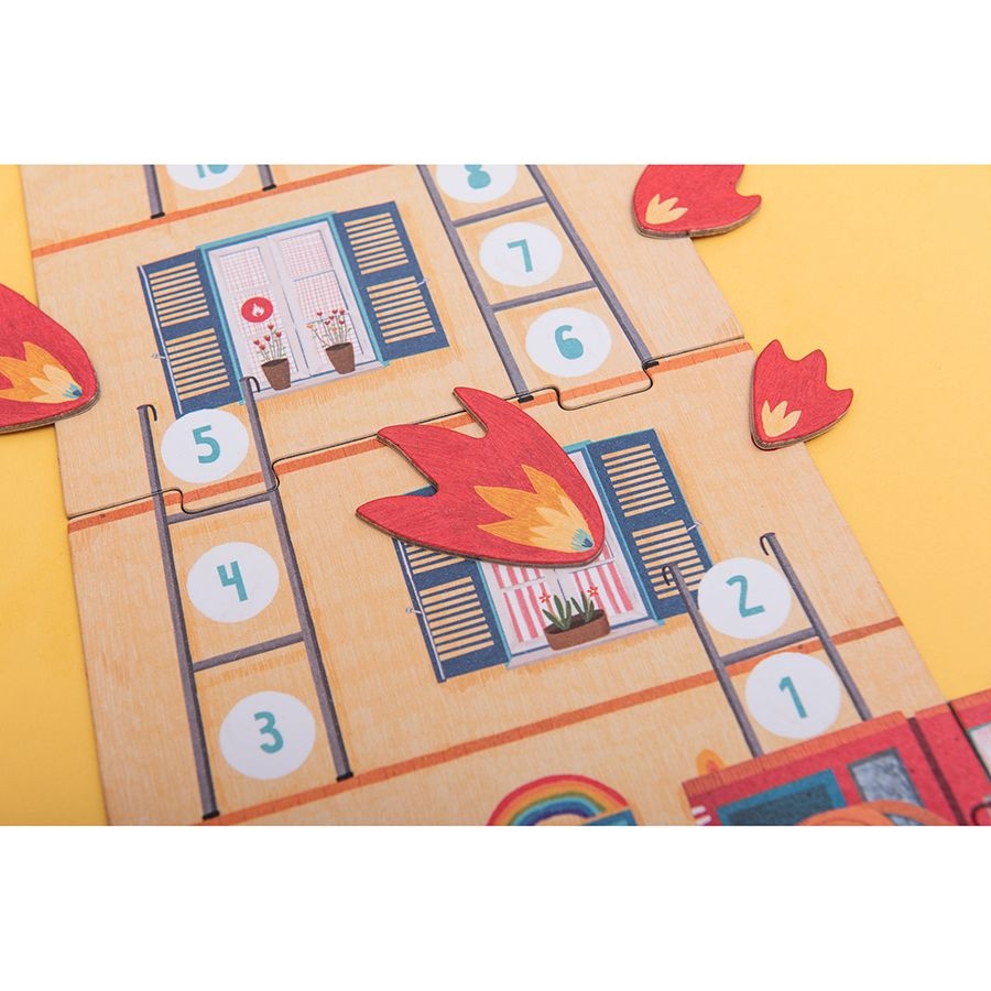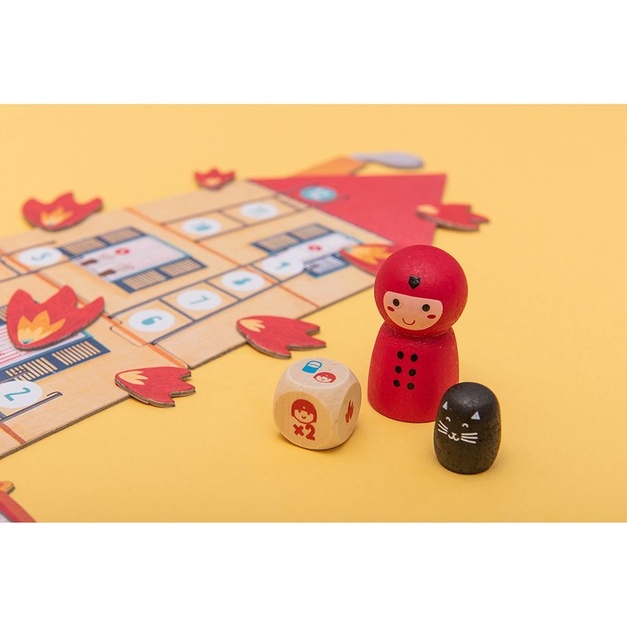 Βοηθήστε τον γενναίο πυροσβέστη να σβήσει όλες τις πυρκαγιές, για να σώσει τη γάτα που είναι παγιδευμένη στη στέγη και να την μεταφέρει στο πυροσβεστικό όχημα. Ένα συνεργατικό επιτραπέζιο παιχνίδι που βοηθάει στην εκμάθηση των αριθμών καθώς και στη λήψη αποφάσεων για την καλύτερη στρατηγική που πρέπει να ακολουθήσουν οι παίκτες.