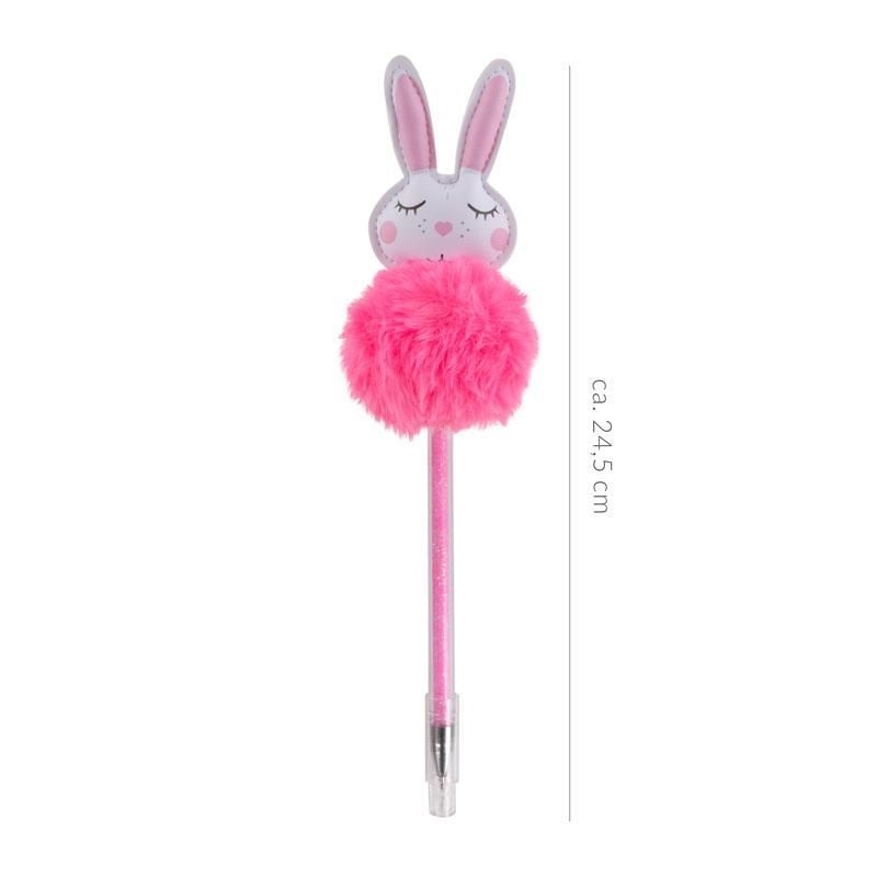 Ένα εντυπωσιακό στυλό για κάθε γραφείο και κασετίνα! Αυτό το χαριτωμένο στυλό rollerball με ένα χνουδωτό λαγουδάκι και ένα υπέροχο εφέ glitter στο στυλό είναι εγγυημένο ότι θα προκαλέσει θαυμασμό.