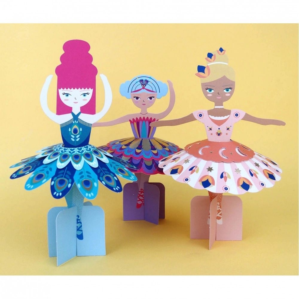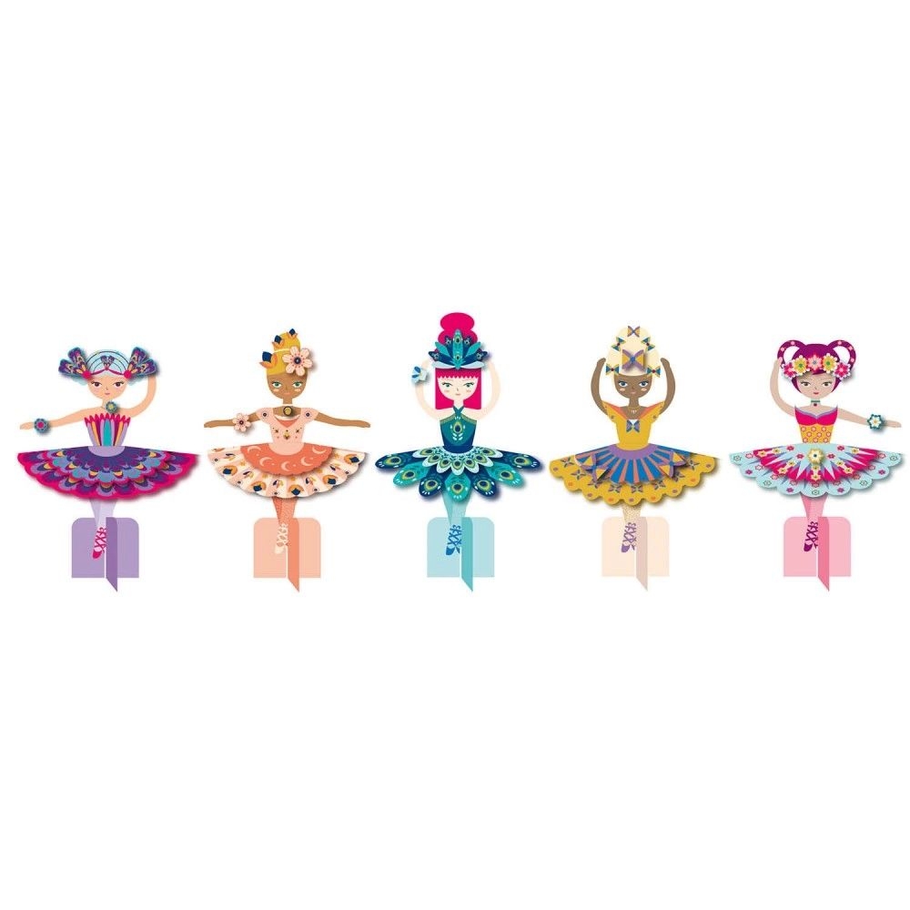 Κατασκευάστε 5 πανέμορφες μπαλαρίνες από χαρτί και διακοσμήστε της με υπέροχα αξεσουάρ. Στη συσκευασία περιλαμβάνεται επίσης ένα σκηνικό θεάτρου για να χρησιμοποιήσετε ως φόντο.