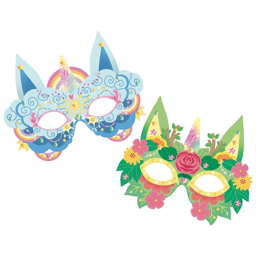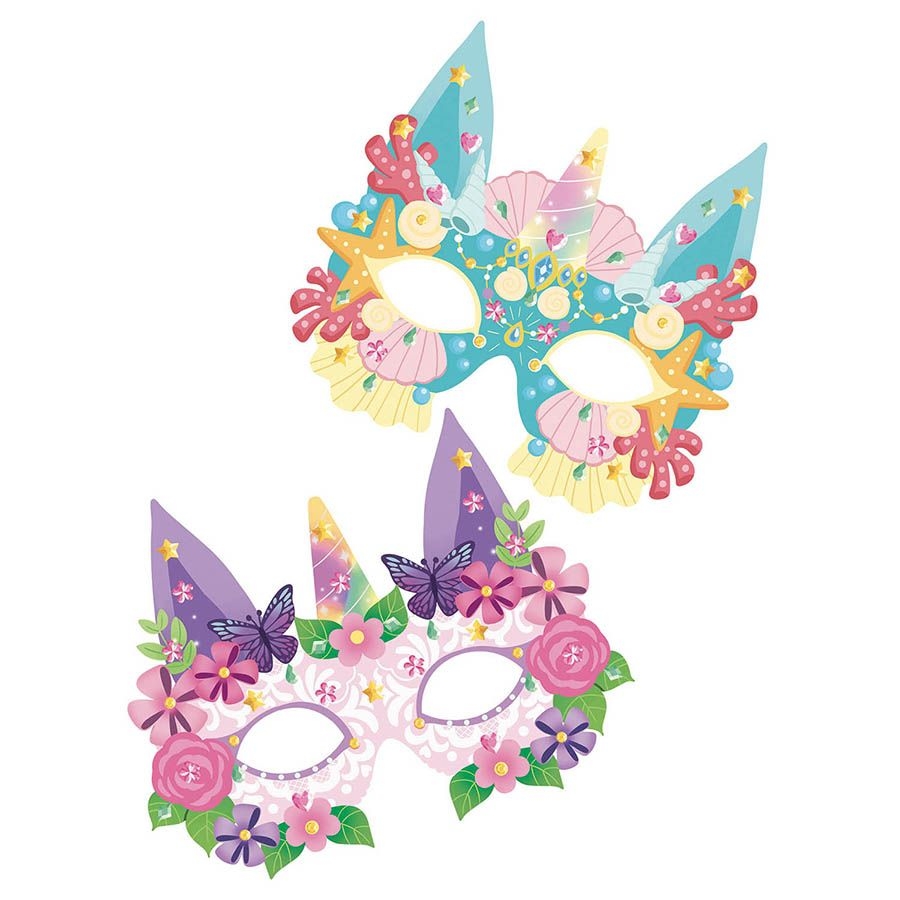 Κατασκευάστε 4 πανέμορφες, φανταχτερές μάσκες μονόκερων και χρησιμοποιήστε τα 150 αστραφτερά αυτοκόλλητα που περιλαμβάνονται στη συσκευασία για να τις διακοσμήσετε όπως επιθυμείτε και να τις εξατομικεύσετε, δημιουργώντας μοναδικά αποτελέσματα. Ουράνιος μονόκερος ή μονόκερος του δάσους, ποιόν θα διαλέξετε; Ακόμα μέσα στη συσκευασία περιέχονται και 20 θεματικά τατουάζ.