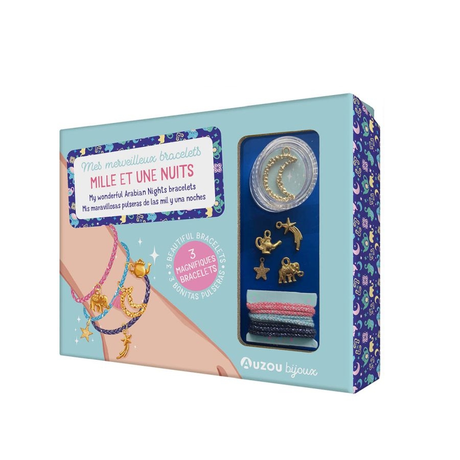 Γνωρίστε την ικανοποίηση και την απόλαυση του να φοράτε ένα κόσμημα που έχετε φτιάξει μόνοι σας! Η σειρά «Φτιάχνω Κοσμήματα», της αγαπημένης μας γαλλικής εταιρίας Auzou, διαθέτει μεγάλη γκάμα από πρωτότυπα, μοντέρνα και δημιουργικά κιτ κατασκευής κοσμημάτων. Βραχιόλια, κολιέ, δαχτυλίδια και πολλά άλλα, ανακαλύψτε τα όλα και δημιουργήστε τις πιο μοναδικές και καταπληκτικές συλλογές αξεσουάρ και κοσμημάτων! Το «My Wonderful Arabian Nights Bracelets» διαθέτει όλα τα υλικά που χρειάζεστε για να φτιάξετε μοναδικά βραχιόλια με φυλακτά, εμπνευσμένα από το παραμύθι «Χίλιες και μία Νύκτες». Στη συσκευασία περιλαμβάνεται και αναλυτικό φυλλάδιο οδηγιών, 40 σελίδων.