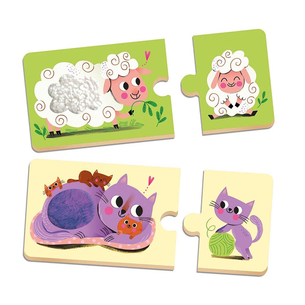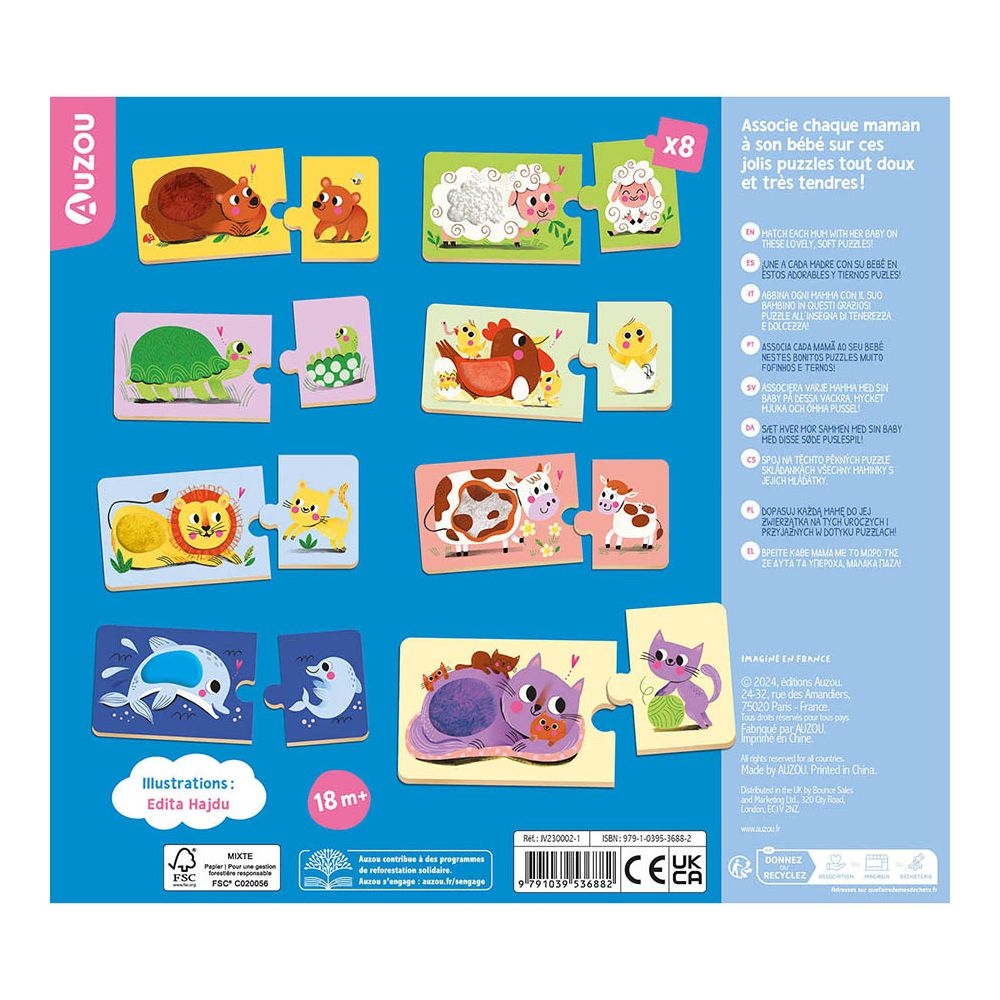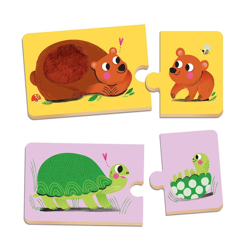 Συναρμολογήστε τα 8 παζλ, 2 κομματιών και ενώστε κάθε μαμά με το παιδάκι της! Κάθε ένα από τα παζλ έχει και μια διαφορετική υφή για να ανακαλύψετε! Ένα χαριτωμένο παζλ που βοηθά τα παιδιά να αναπτύξουν τις λεπτές κινητικές τους δεξιότητες ενώ ταυτόχρονα ενισχύει την υπομονή τους και την ανάπτυξη των αισθήσεών τους.