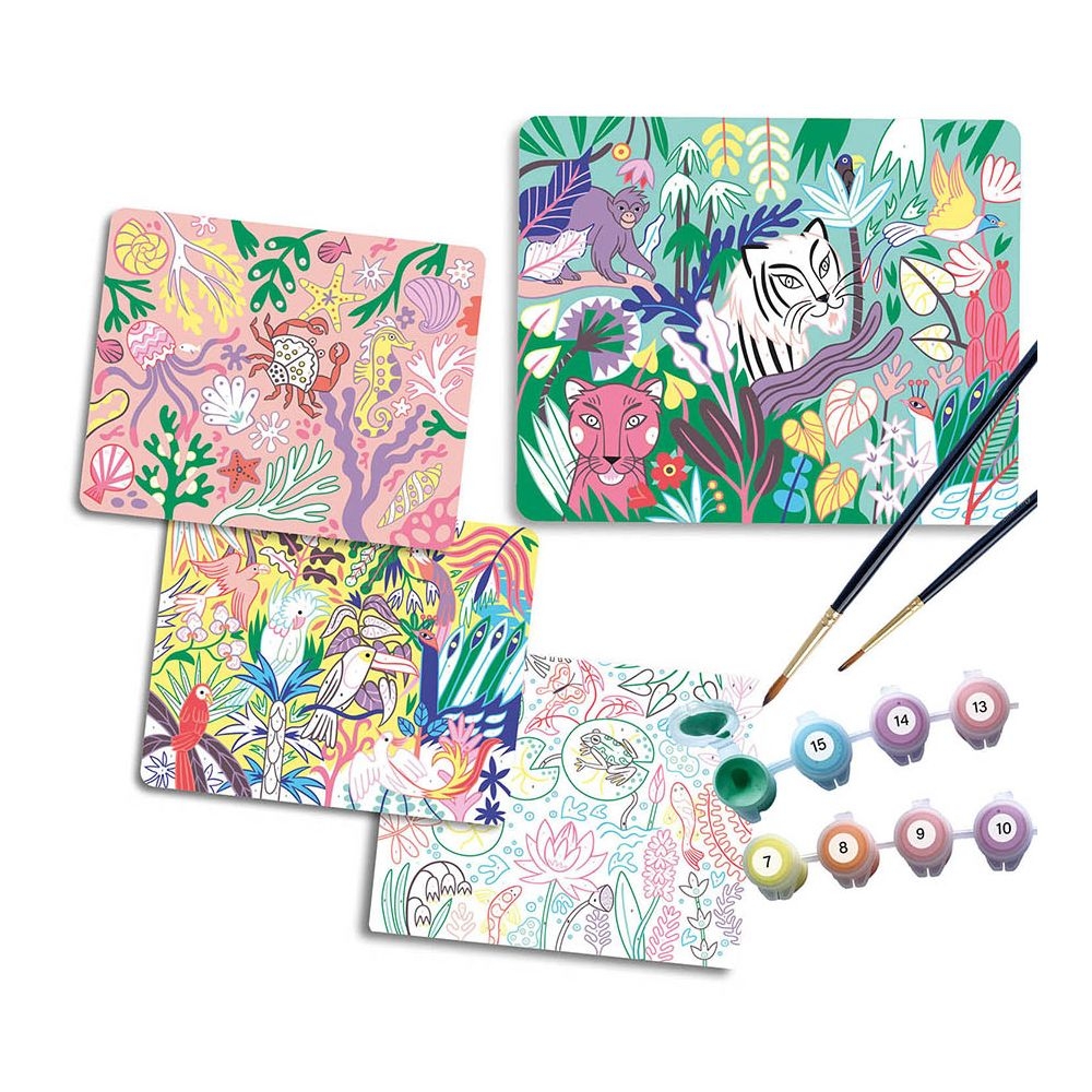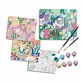 Ένα φανταστικό κιτ ζωγραφικής, με το οποίο τα παιδιά θα φτιάξουν μαγευτικές εικόνες. Οι 4 κάρτες που περιλαμβάνονται στη συσκευασία, έχουν οριοθετημένες περιοχές, αριθμημένες με συγκεκριμένα νούμερα. Κάθε νούμερο αντιστοιχεί σε ένα από τα 16 κουτάκια νερομπογιάς, που επίσης περιλαμβάνονται στην συσκευασία. Ακολουθήστε λοιπόν τους αριθμούς, και χρωματίστε σταδιακά την εικόνα σας, ώστε να οδηγηθείτε σε ένα υπέροχο αποτέλεσμα. Στο κουτί περιλαμβάνονται επίσης και 2 πινέλα.