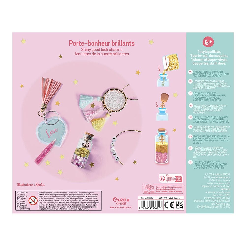 Το «Shiny Good Luck Charms» της αγαπημένης μας Auzou, περιλαμβάνει όλα τα απαραίτητα υλικά για να κατασκευάσετε 4 μοναδικά και απίστευτα χαριτωμένα βραχιολάκια σε μοναδικές φανταχτερές αποχρώσεις. Στη συσκευασία θα βρείτε, ένα μαγικό φιαλίδιο που κρύβει μέσα του ένα τετράφυλλο τριφύλλι, μία πολύχρωμη ονειροπαγίδα για να κρεμάσετε στο κρεβάτι σας πάνω από το προσκέφαλο σας, ένα φυλακτό-βραχιόλι με τη λέξη «Lucky» γραμμένη με χάντρες, για να φοράτε κάθε μέρα και ένα ιδιαίτερο μπρελόκ για να κρεμάσετε στα κλειδιά σας.