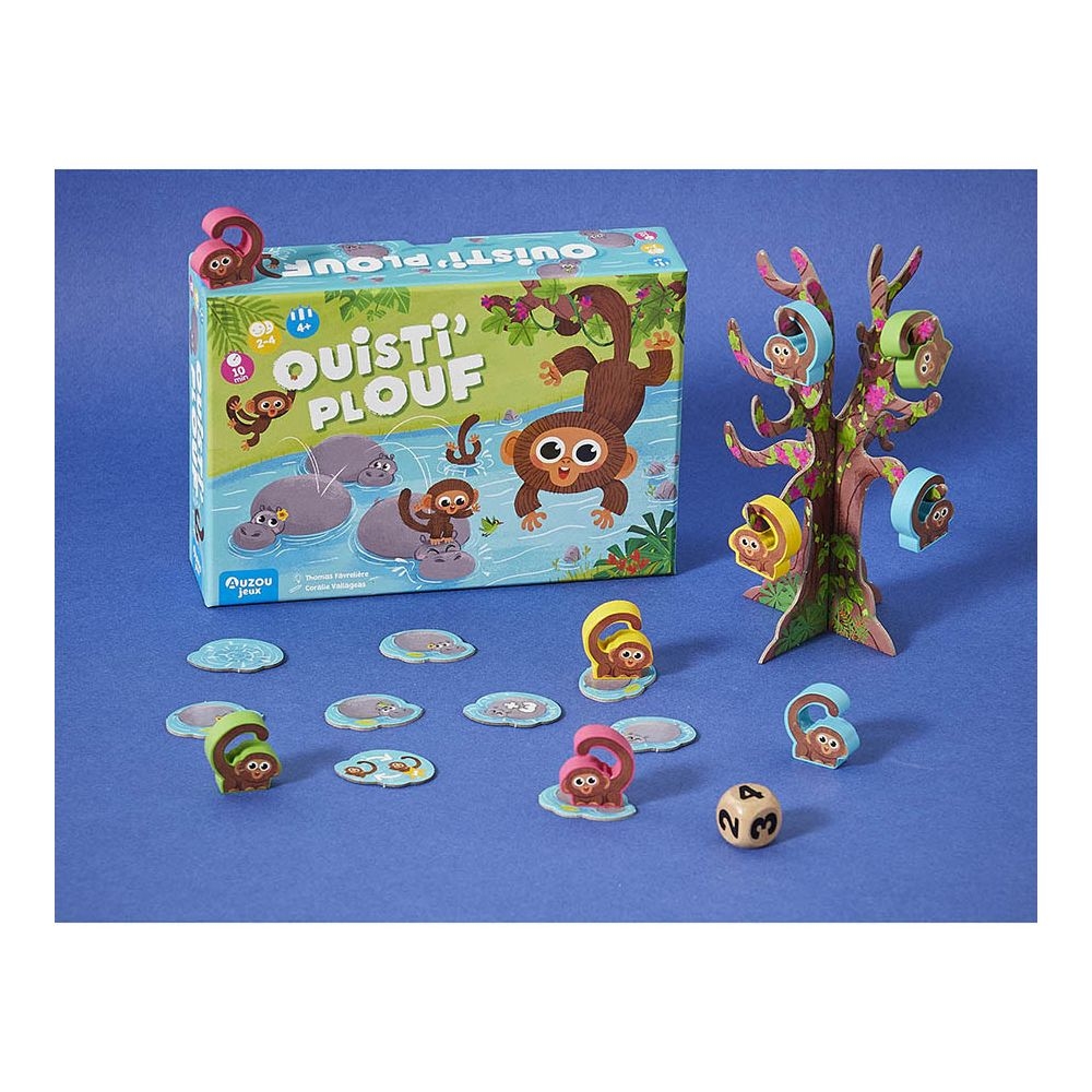 Το «Monkey Splash» πρόκειται για ένα μοναδικό παιχνίδι μνήμης και στρατηγικής σκέψης. Αναποδογυρίστε τα σωστά ιπποποταμάκια έτσι ώστε να πατήσουν πάνω τους τα μαϊμουδάκια σας και να διασχίσουν το ποτάμι χωρίς να βραχούν.