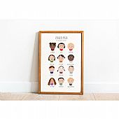 Χειροποίητη αφίσα διακόσμησης δωματίου με τα Συναισθήματα αποτυπωμένα σε προσωπάκια παιδιών. Τυπωμένη αφίσα σε χαρτί 250gr.