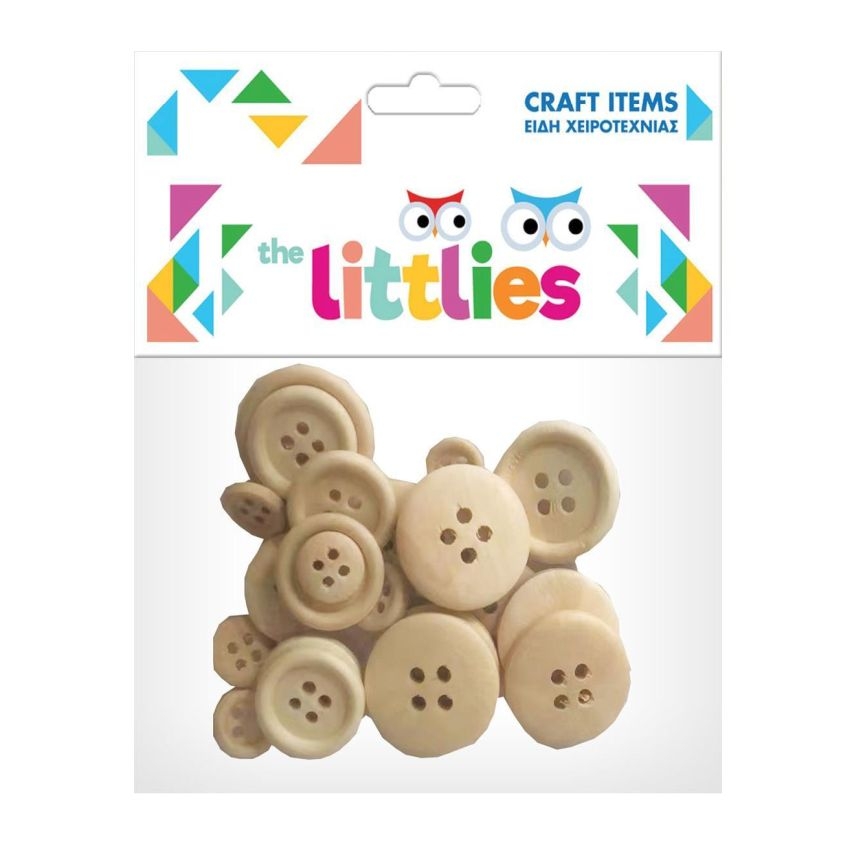 Ξύλινα Κουμπιά Χειροτεχνίας σε 3 μεγέθη The Littlies με φυσικό χρώμα 24 Τμχ. μοναδικά για να διακοσμήσουν εντυπωσιακές παιδικές χειροτεχνίες και DIY κατασκευές στο σχολείο, το σπίτι και όχι μόνο! Η σειρά The Littlies αποτελεί την ιδανική επιλογή ειδών Χειροτεχνίας με υπέροχα Ξύλινα Κουμπιά που θα ενθουσιάσουν και θα γίνουν το απαραίτητο υλικό για κάθε κατασκευή.
