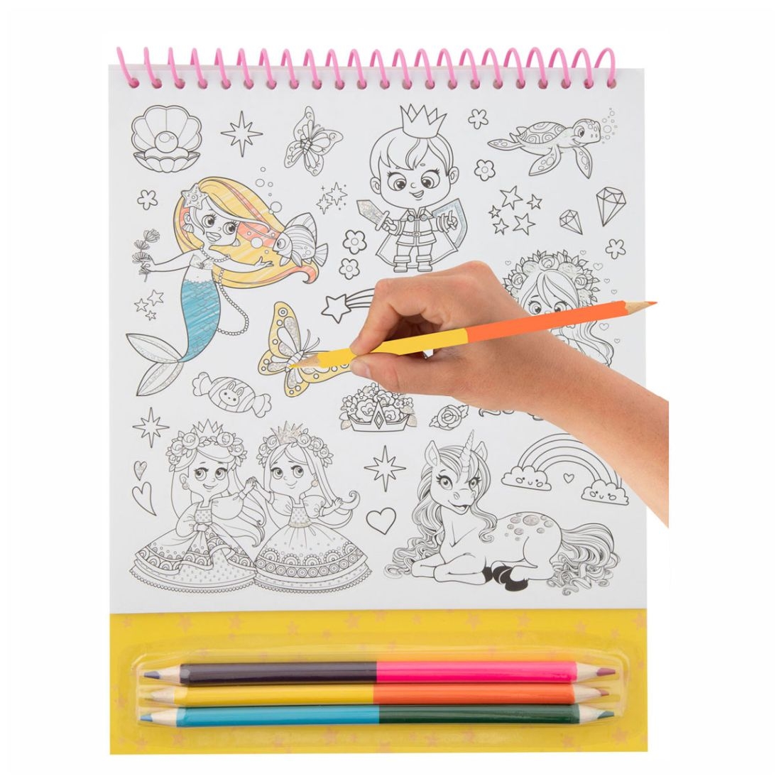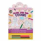 Χρωματίστε τα δικά σας αυτοκόλλητα 250 τεμαχίων με τις 3 διπλές ξυλομπογιές που περιλαμβάνει η συσκευασία! Φτιάξτε τα δικά σας αυτοκόλλητα! Αυτό το χαρούμενο βιβλίο ζωγραφικής ζώων σε βιβλιοδεσία περιέχει περισσότερα από 250 αυτοκόλλητα για να τα χρωματίσετε μόνοι σας. Πριγκίπισσες, μονόκεροι, πεταλούδες , γοργόνες κ.α. σας περιμένουν να τα ανακαλύψετε!