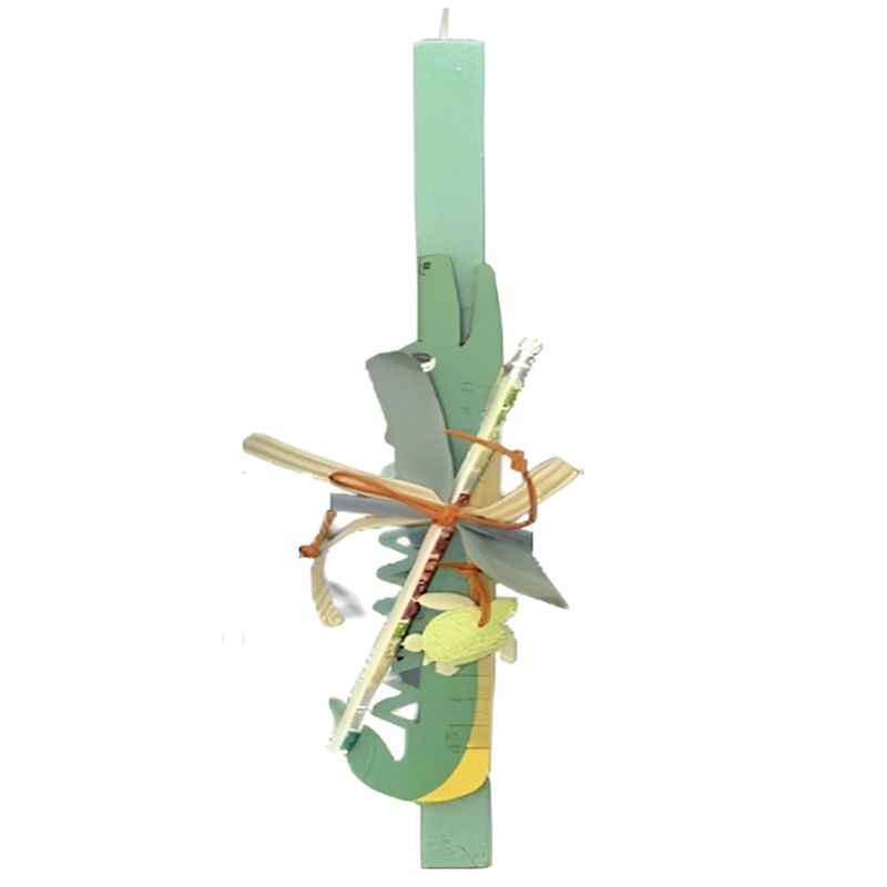 Πασχαλινή Λαμπάδα Πράσινη (35εκ.) - Ξύλινος Χάρακας Κροκόδειλος