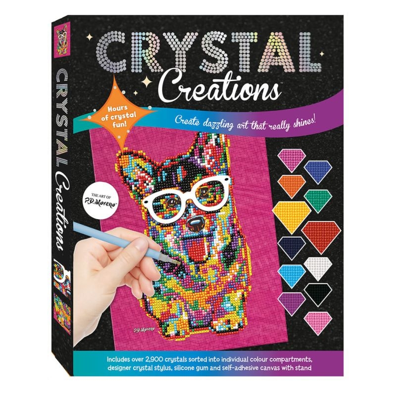 Η Crystal Creations είναι μια νέα τάση χειροτεχνίας, απλή αλλά εξαιρετικά εθιστική και εντυπωσιακή στο αποτέλεσμά της. Αφήστε τη δημιουργικότητά σας να ξεδιπλωθεί σε αυτό το λαμπερό σετ δημιουργίας με κρυστάλλους με θέμα ένα σκύλο με γυαλιά. Χρησιμοποιήστε το ειδικό στυλό και ακολουθήστε βήμα προς βήμα τις οδηγίες για να τοποθετήσετε στη σωστή θέση τους κρυστάλλους και να δημιουργήσετε τον δικό σας πολύχρωμο και λαμπερό καμβά!