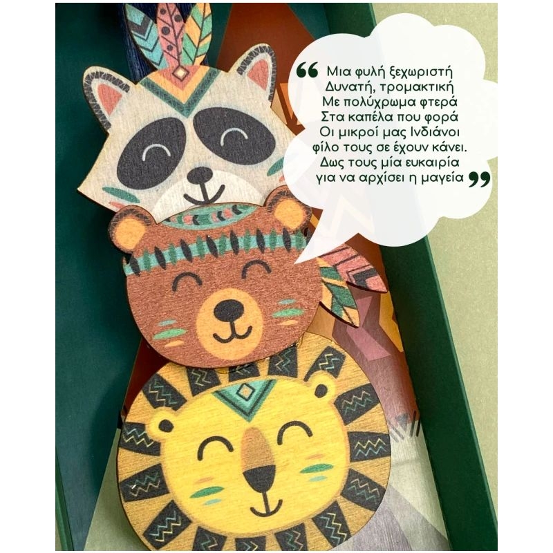 Για το αγαπημένο σου βαφτιστήρι που του αρέσουν τα ζώα του δάσους, τα Ινδιανοζωάκια, είναι η ιδανική λαμπάδα. Αποτελείται από μπλε κερί, με τα χαριτωμένα ζωάκια να τη διακοσμούν, τα οποία στη συνέχεια μπορούν να ξεκρεμαστούν και να κολληθούν οπουδήποτε επιθυμούν τα παιδιά, μιας και είναι μαγνητάκια. Η λαμπάδα "φιλοξενείται" μέσα σε υπέροχη συσκευασία δώρου, εικονογραφημένη με boho στοιχεία, έτοιμη να τη δωρίσεις στα αγαπημένα σου βαφτιστήρια. Και στο πίσω μέρος της λαμπάδας, ένα μικρό ποιημάτακι, για όλα τα παιδάκια: