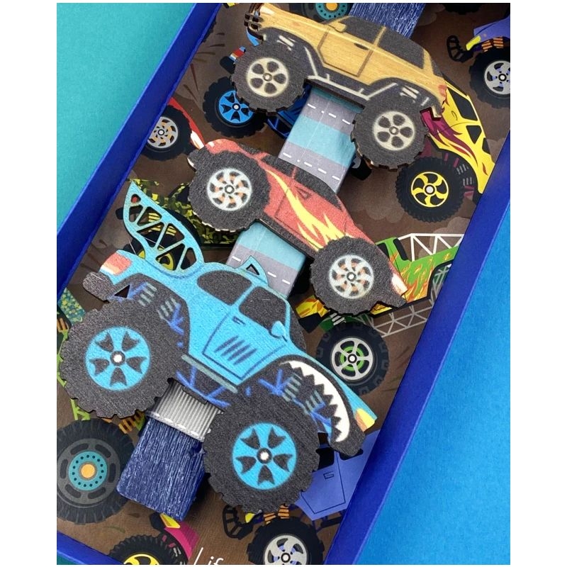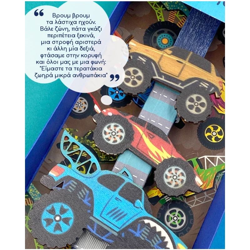 Για το αγαπημένο σου βαφτιστήρι που του αρέσουν τα αυτοκίνητα, τα "Τερατο-Αυτοκίνητα", είναι η ιδανική λαμπάδα. Αποτελείται από μπλε κερί, με τρία αγωνιστικά αυτοκίνητα να τη διακοσμούν, τα οποία στη συνέχεια μπορούν να ξεκρεμαστούν και να κολληθούν οπουδήποτε επιθυμούν τα παιδιά, μιας και είναι μαγνητάκια. Η λαμπάδα "φιλοξενείται" μέσα σε υπέροχη συσκευασία δώρου, εικονογραφημένη με αυτοκίνητα, έτοιμη να τη δωρίσεις στα αγαπημένα σου βαφτιστήρια. Και στο πίσω μέρος της λαμπάδας, ένα μικρό ποιηματάκι, για όλα τα παιδάκια:
