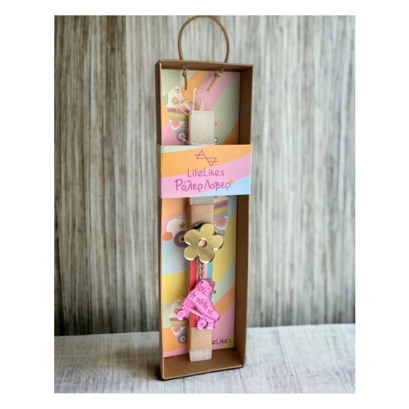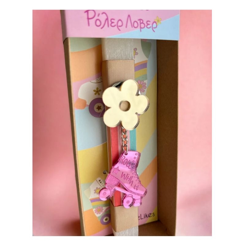 Για τα κορίτσια που λατρεύουν τα rollers, χάρισε τους αυτή τη μοναδική λαμπάδα που συνοδεύεται από μπρελόκ με φούξια πατίνι και λουλουδάκι. Η λαμπάδα είναι τοποθετημένη σε συρταρωτό κουτί με αντίστοιχο σχεδιασμό. Τελειοποίησε το δώρο σου, προσθέτοντας το όνομά του παιδιού επάνω στο μπρελόκ και μια όμορφη ευχετήρια κάρτα!