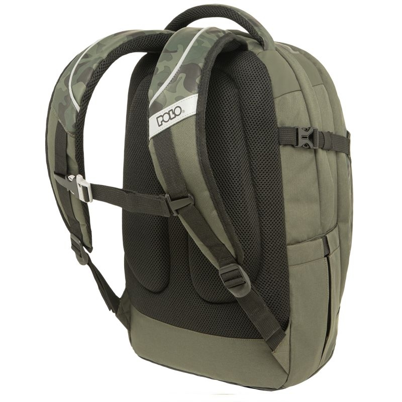 Ένα ευρύχωρο σακίδιο πλάτης σε olive χρώμα με την υπογραφή της Polo. Το σακίδιο διαθέτει στη βάση του "κρυμμένο" αδιάβροχο!