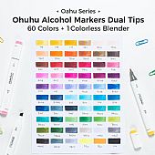 Art Markers: Σετ Μαρκαδόρων Oahu Alcohol - Fine & Chisel (60 Χρωμάτων+1 Blender) - Ohuhu