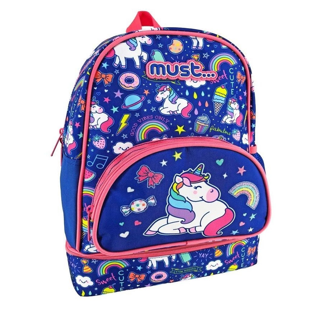 Η Σχολική Τσάντα Πλάτης Νηπίου Must Unicorn ξεχωρίζει για την Ισοθερμική Θήκη Φαγητού στο κάτω μέρος και τον υπέροχο μονόκερο! Ιδανική τσάντα πλάτης προσχολικής ηλικίας που μεταφέρει με ασφάλεια, άνεση και ευκολία το φαγητό και όλα τα απαραίτητα σχολικά είδη στον παιδικό σταθμό και το νηπιαγωγείο.