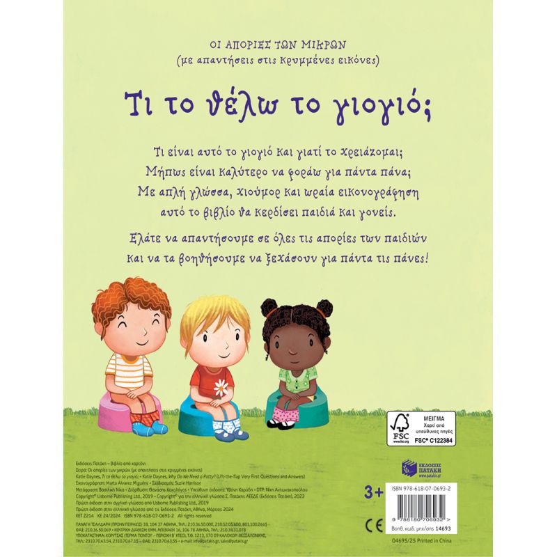 Τι είναι αυτό το γιογιό και γιατί το χρειάζομαι; Μήπως είναι καλύτερο να φοράω για πάντα πάνα; Με απλή γλώσσα, χιούμορ και ωραία εικονογράφηση αυτό το βιβλίο θα κερδίσει παιδιά και γονείς. Ελάτε να απαντήσουμε σε όλες τις απορίες των παιδιών και να τα βοηθήσουμε να ξεχάσουν για πάντα τις πάνες!
