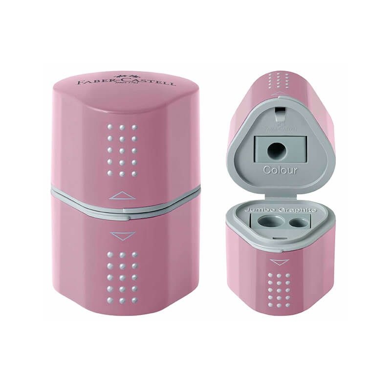 Ξύστρα τριπλή με δοχείο - Pastel Ροζ - Faber-Castell Grip 2001 Trio