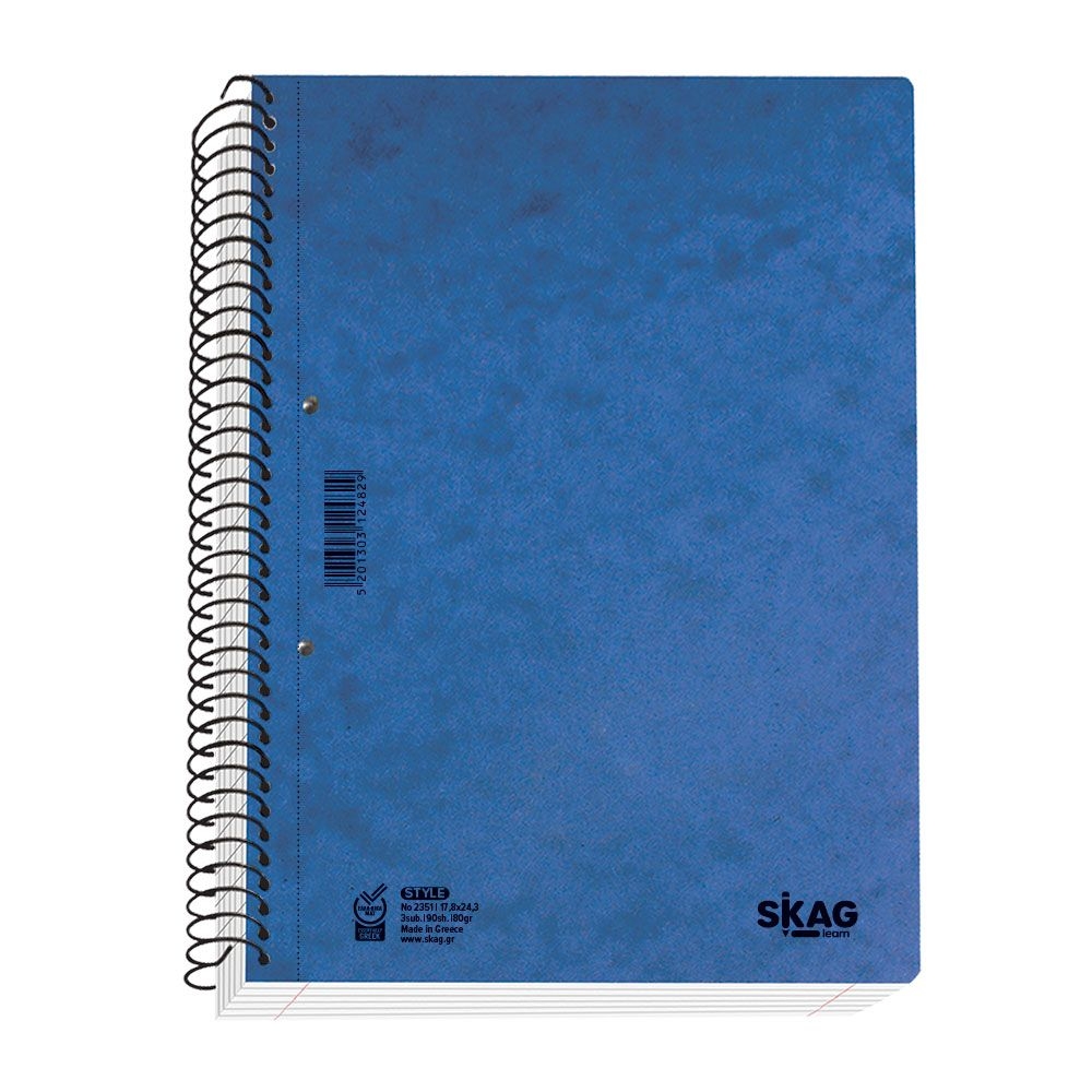 Τετράδιο σπιράλ 3 θεμάτων της σειράς Skag σε 5 χρώματα. Διαθέτεi εξώφυλλο από χαρτόνι και 90 ριγέ φύλλα 80gr. Περφορέ με τρύπες για την άμεση αρχειοθέτηση των σημειώσεων η των εργασιών σας.