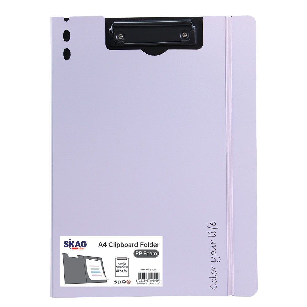 Ντοσιέ σεμιναρίου δίφυλλο A4 με πιάστρα & λάστιχο - Pastel Μοβ - Skag