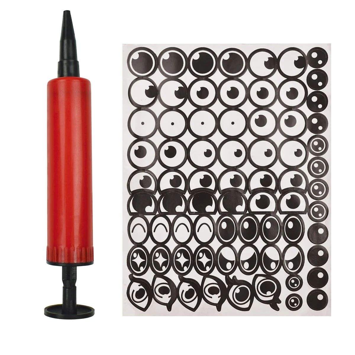 Περιλαμβάνει: 32 μπαλόνια κατασκευής, 1 τρόμπα, 1 σελίδα με αυτοκόλλητα και οδηγίες.