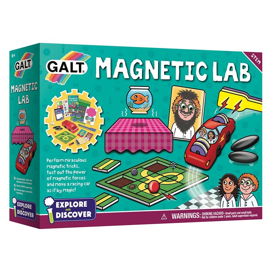 Οδηγήστε ένα αγωνιστικό αυτοκίνητο χωρίς να το αγγίξετε, παράγετε αστείους ήχους κροταλία και εκτελέστε ένα εντυπωσιακό κόλπο αιώρησης. Σχεδιάστε λαβυρίνθους για μπίλιες και φτιάξτε, σαχλά τριχωτά πρόσωπα με ρινίσματα σιδήρου. Στο «Magnetic Lab» περιλαμβάνονται 9 διασκεδαστικά πειράματα.