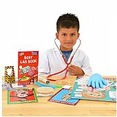 Περιλαμβάνει: Στηθοσκόπιο, 2 τρυβλία καλλιέργειας πετρί, γάντια, 2 μπατονέτες, φτερό, μεζούρα, σύριγγα, ζελατίνη φυτικής προέλευσης, σωλήνας, καλαμάκι, ταμπόν μελάνης για δακτυλικά αποτυπώματα, φύλλα ταυτότητας ID, μεγεθυντικός φακός, 5 ξυλάκια, 2 λαστιχάκια, 2 σακουλάκια με κλείσιμο, επαναχρησιμοποιούμενα αυτοκόλλητα οργάνων και κόκκαλων, κάρτα σκελετικού συστήματος, κάρτα οργάνων, εκτυπωμένες κάρτες, σημειωματάριο και εγχειρίδιο οδηγιών 32 σελίδων στην Αγγλική γλώσσα.